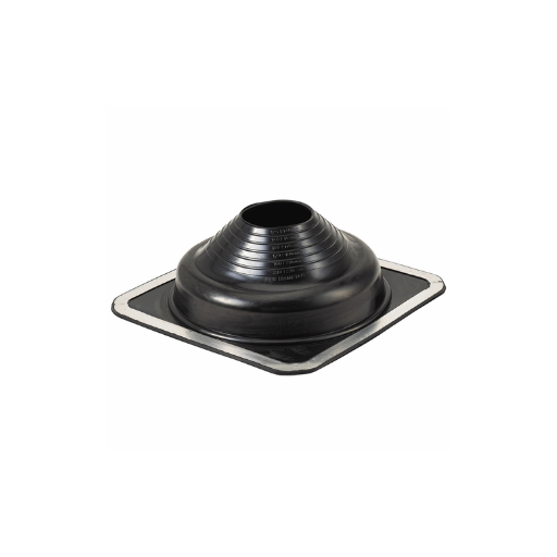 An EPDM rubber spring flashing for sealing pipe and conduit penetrations through metal roofing and cladding. Suits pipe diameters of 50-80mm with a 160mm base plate for a watertight seal.